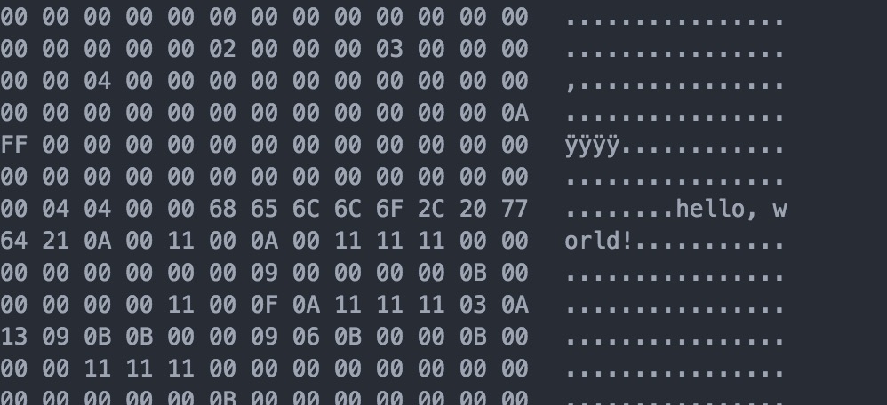 hex 에디터로 열어서 hello, world를 찾아 보는것이 도리겠죠?